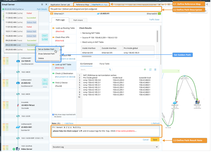 AAM allows users to document the application paths while the network is healthy, including the expected (Golden) paths, the reference map, path nodes and path NIs.