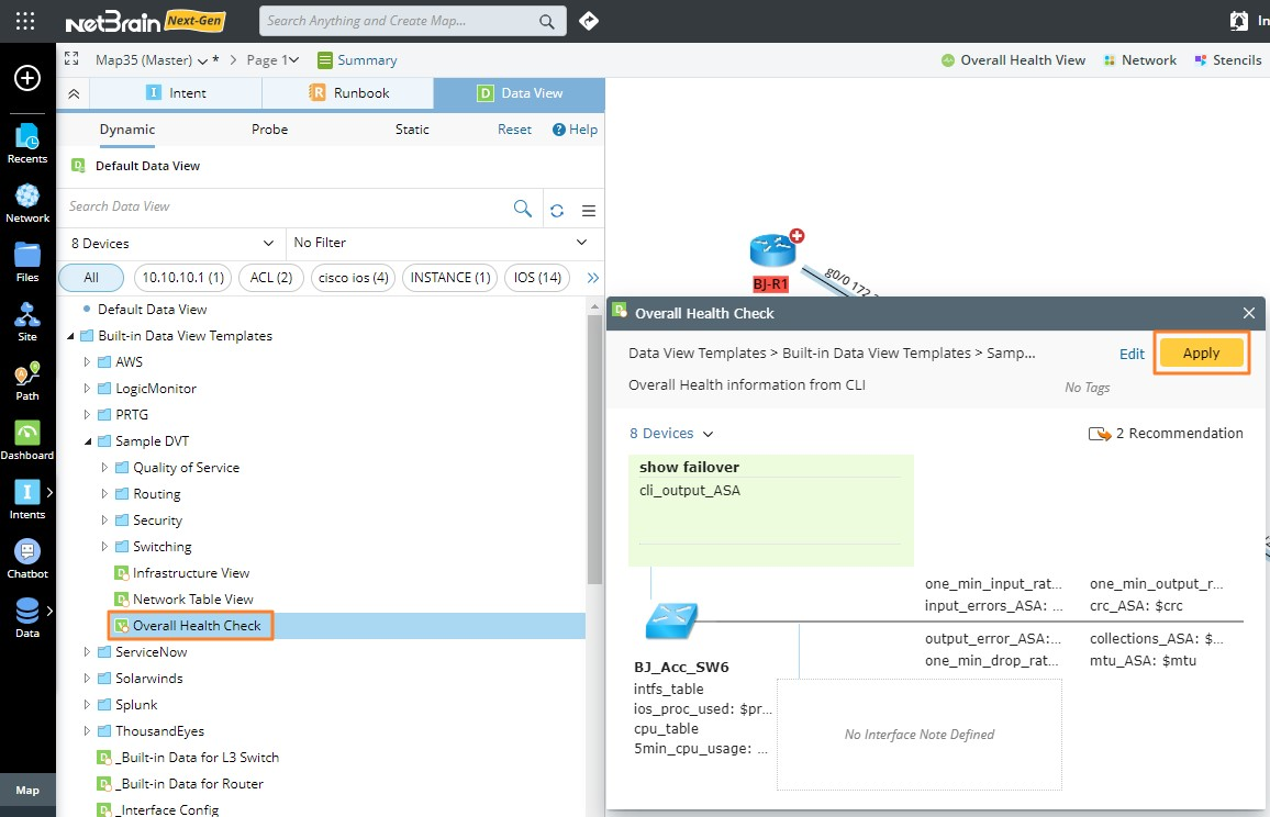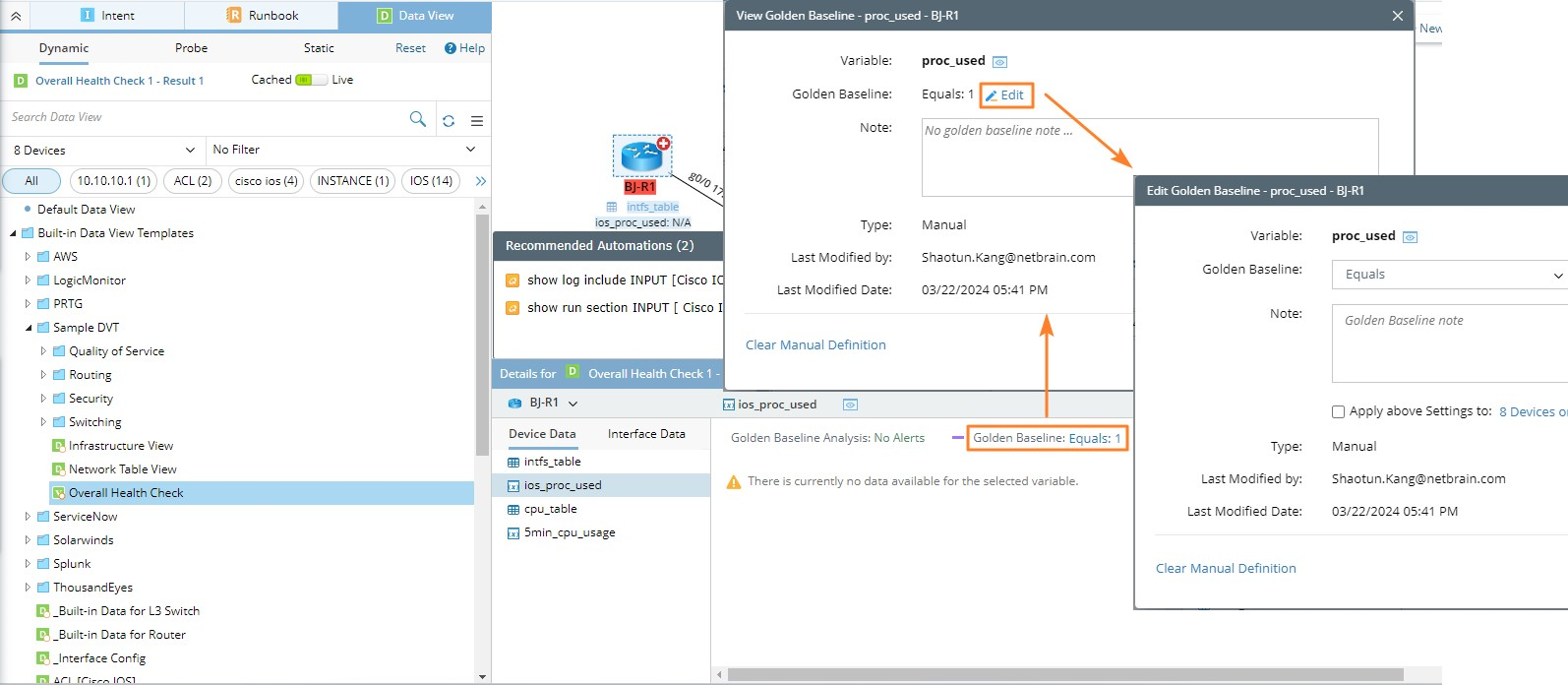 After applying a data view template to a map, let’s take the Overall Health Check Data View as an example. You can define Golden Baseline Rule for parser variables and apply the rules to devices/interfaces on the map.