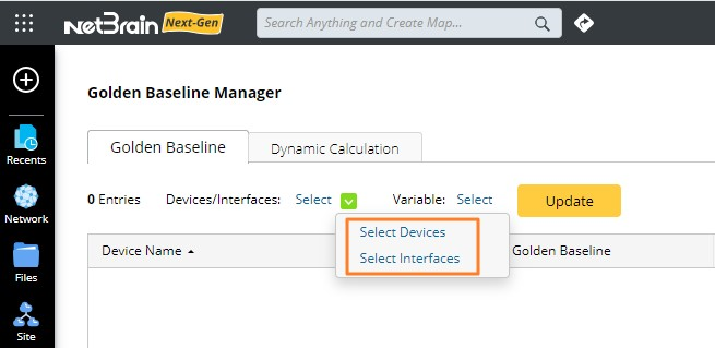 If you do not know a Golden Baseline and wish to use the recently observed data as resources to calculate a Golden Baseline, you can use the following function to have NetBrain System calculate a Golden Baseline for you: