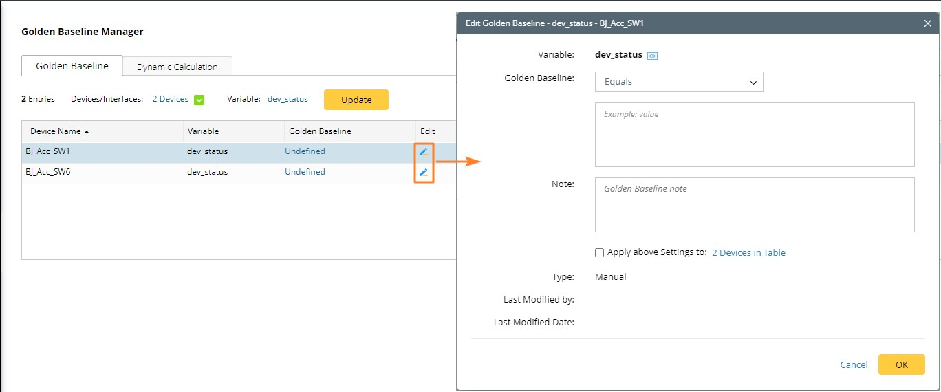 Tip: When Golden Baseline Rules are applied to other device types, the system will look up variable mappings to determine the corresponding variables of those devices.