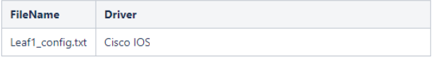 The parameters in the CSV file are described in the table below:Parameter Description FileName*required The name of a configuration file that you will import. Driver*required The corresponding device driver name or ID of a configuration file in your NetBrain system. The drivers are used to parse configuration files. To get the driver information of a device, go to System Management > Tenant Management > Operations > Multi-vendor Support >Device Driver. - In the FTP server, save the CSV file and the configuration files in the same directory.