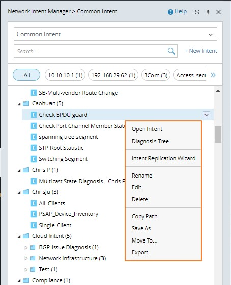 - By default, all the sub-folders and intents under the Common Intent category are displayed. You can also enter keyword in the search field to filter the intents.