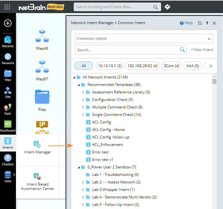 - Click the navigation bar to open the Network Intent Manager.