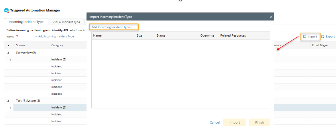 and select Triggered Automation Manager. - Click the Incoming Incident Type tab.