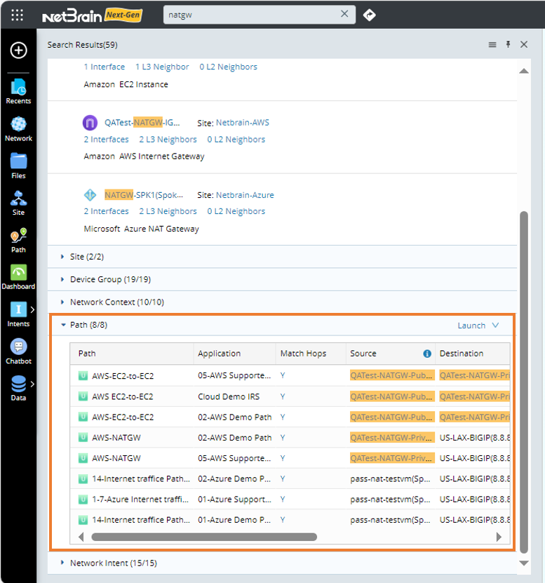- Press the Enter key on your keyboard to start searching. The search results are displayed with the matched keyword highlighted.