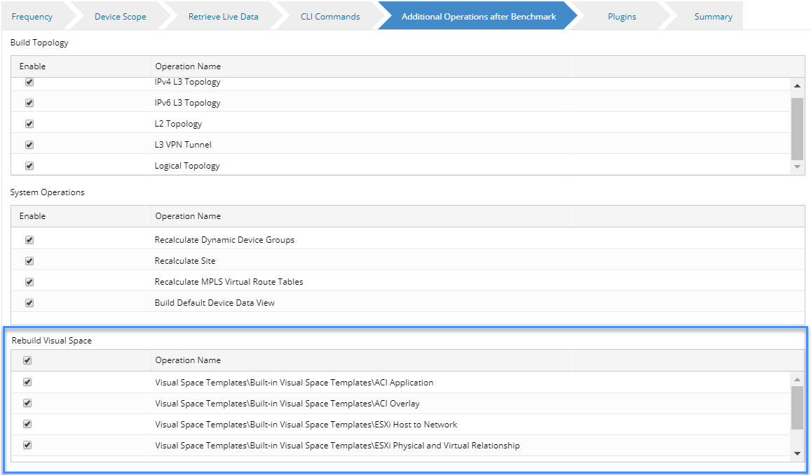 - On the Additional Operation After Benchmark tab, select all the checkboxes in the Build Topology and Rebuild Visual Space areas.