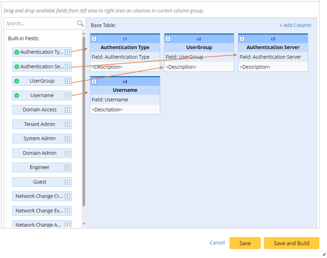 - Mapping Available Fields in CSV to Column Group: Drag and drop the available fields to the column group definition area to create ADT columns automatically.