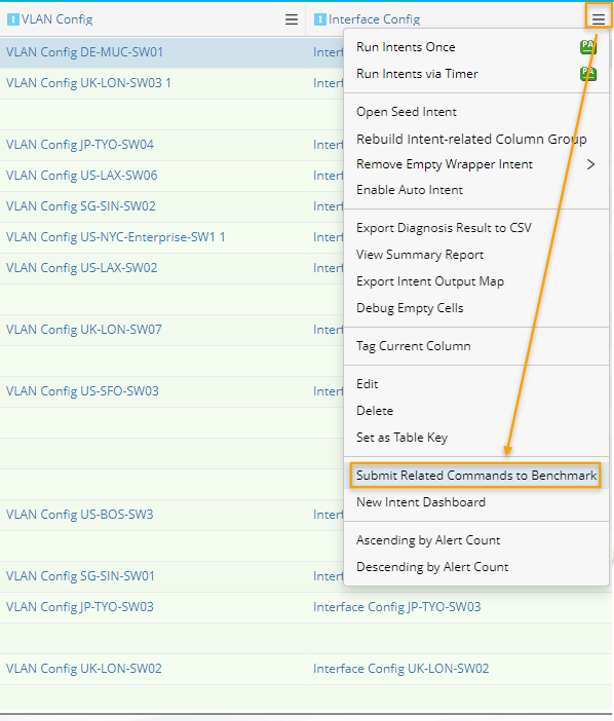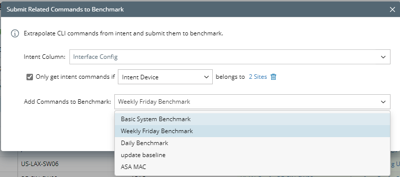 and select the Submit Related Commands to Benchmark from the menu of an intent column.