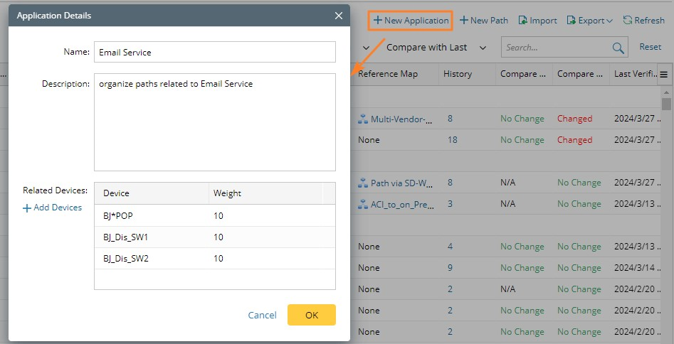 - Select an application for the path, such as Email Service.