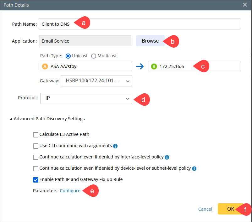 - Enter a meaningful name for the path, such as Client to DNS.