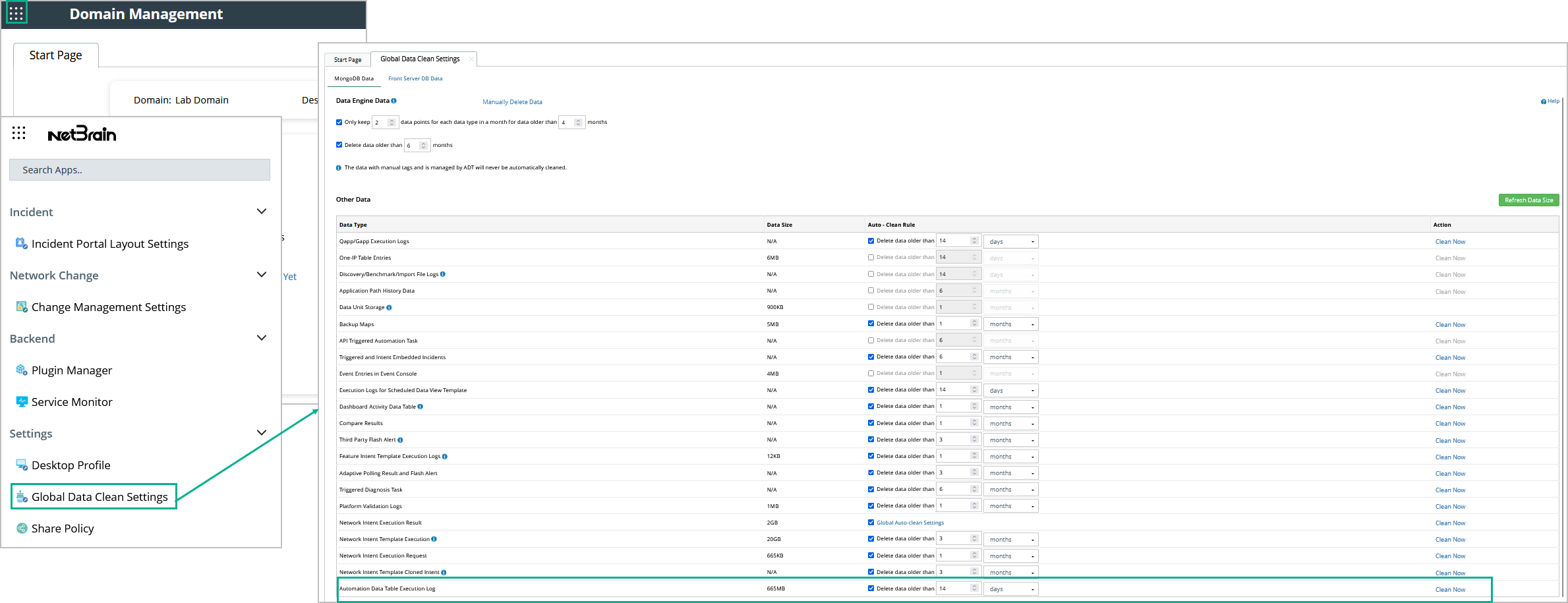 - Go to Domain Management > Global Data Cleaning Settings.
