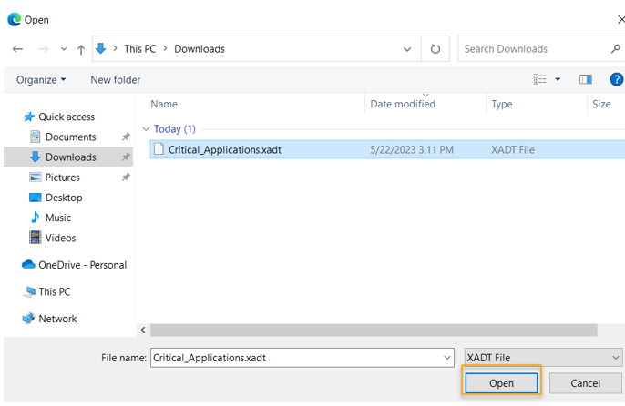 Click Import to import the file to ADT.