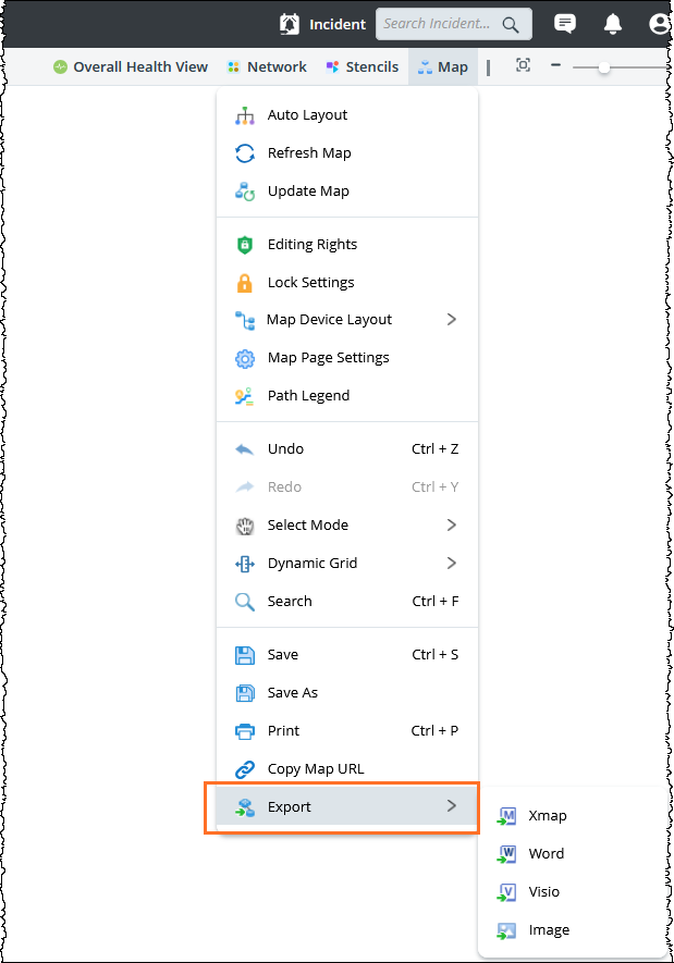 When you encounter any problem on your map (such as a failure in path calculating), you can export the map file and then send it to NetBrain Support Team for troubleshooting. On the other hand, you can collaborate with others to deal with network issues through a map which contains required network data.