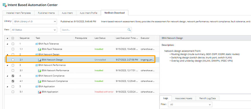 If incompatible Libraries are removed while publishing new Libraries, the tasks in the removed Libraries must be reserved so they can be uninstalled. The removed Libraries and the originally installed tasks are displayed in Uninstalled status. After uninstallation, their status changes to Uninstalled. These tasks cannot be installed again.
