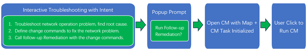 When users check the network operation status in the network intent and discover an exception, they need identify the root cause and determine the required config change commands and CM template to resolve the issue.