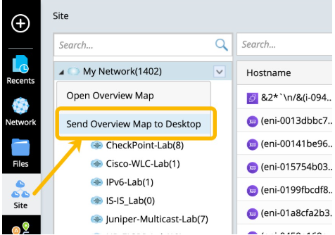 - Right-click the root node My Network and select Open Overview Map from the drop-down menu. The overview map opens, and sites are organized in the hierarchy view by default.