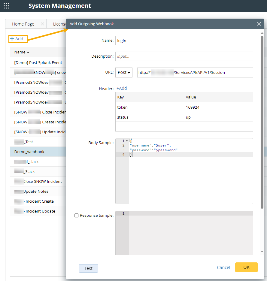- Click OK to complete the settings. The outgoing webhook defined will be added to the Outgoing Webhook Manager.