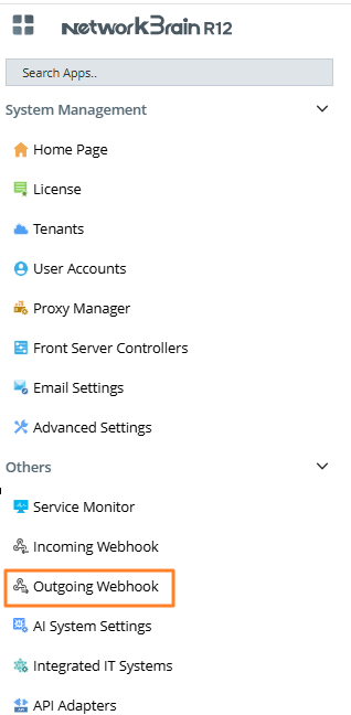 Outgoing webhook can be created and used in NI definition to push the data and execution results in NI to third-party application, connecting NetworkBrain to third-party system. Outgoing Webhook Manager is central place for creating and managing outgoing webhooks in the domain. After outgoing webhook is defined, in NI execution, you can use Webhook Call to send alerts to external ticket system. For more information, see Call Webhook API.