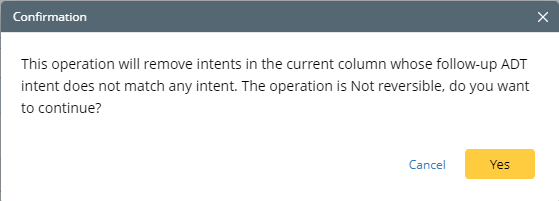 Certain ADT intent columns primarily act as wrapper intents designed solely for invoking follow-up ADT intents. To minimize the presence of irrelevant wrapper intent data for users, the "Remove Empty Wrapper Intent" feature has been added. This function eliminates the wrapper intent from the ADT column when it does not correspond to any follow-up ADT intent. It is important to note that the cloned intent itself is not deleted; only the binding relationship from the ADT is cleared. If needed, users can also manually remove the wrapper intent.