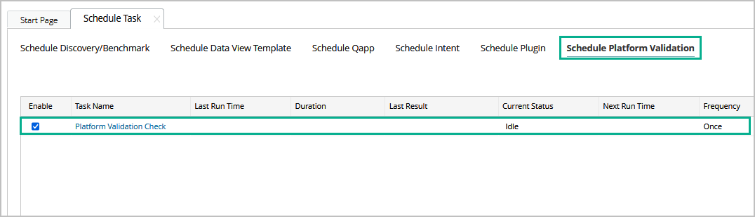 Follow the steps below to schedule the Platform Validation task: