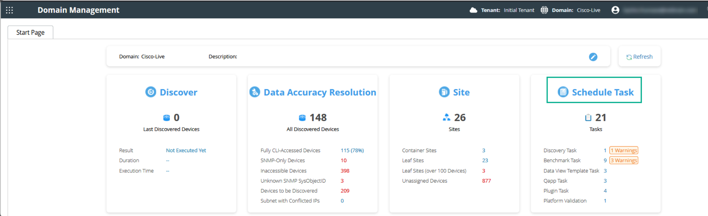 - In the Start Page tab, click the Schedule Task function.