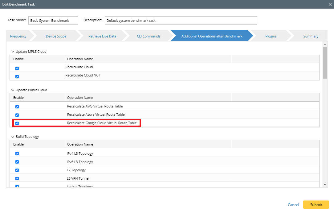 Note: It is highly recommended to re-use the “Basic System Benchmark” with a full benchmark task to ensure all GCP-connected physical or virtual devices are selected within the device scope. |