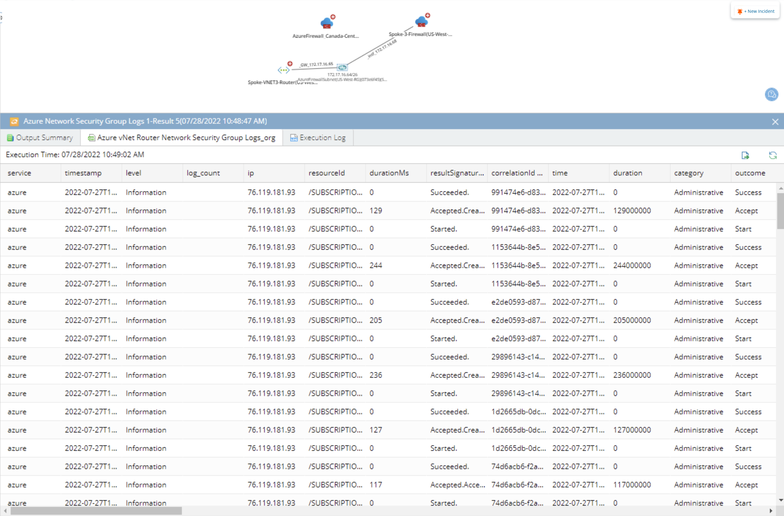 A Runbook with the built-in Qapp Azure Network Security Group Logs can help you quickly identify important NSG related logs for each VNet on the map.
