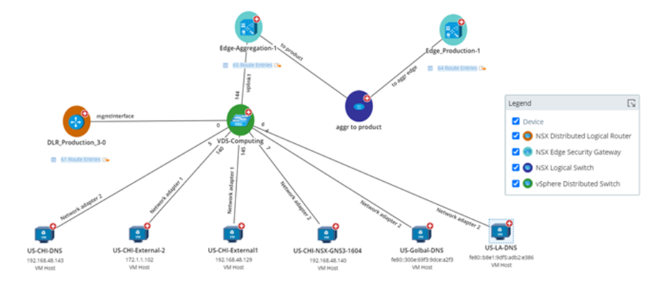 - Map the logical NSX connectivity alongside the traditional physical network – obtain accurate and up-to-date visibility into the NSX environment and the external network it is built upon.