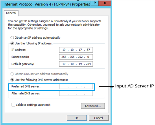 - Configure the IP address of the AD server as the preferred DNS server through Network Settings, and then restart the network service.