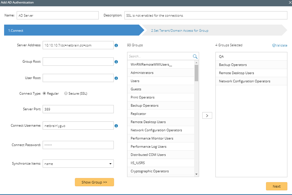 Tip: Click Validate to verify whether the selected groups still exist on the AD server. Click the