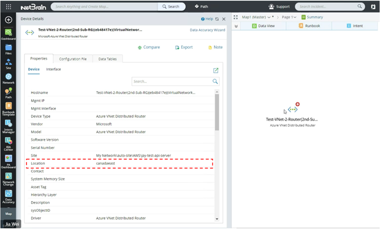 - To define a site, enter the Region or Location in the Public Cloud Node. These two attributes are commonly used by users to define the site. To check the device location: