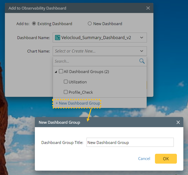 - Dashboard Name: Select an existing observability dashboard.