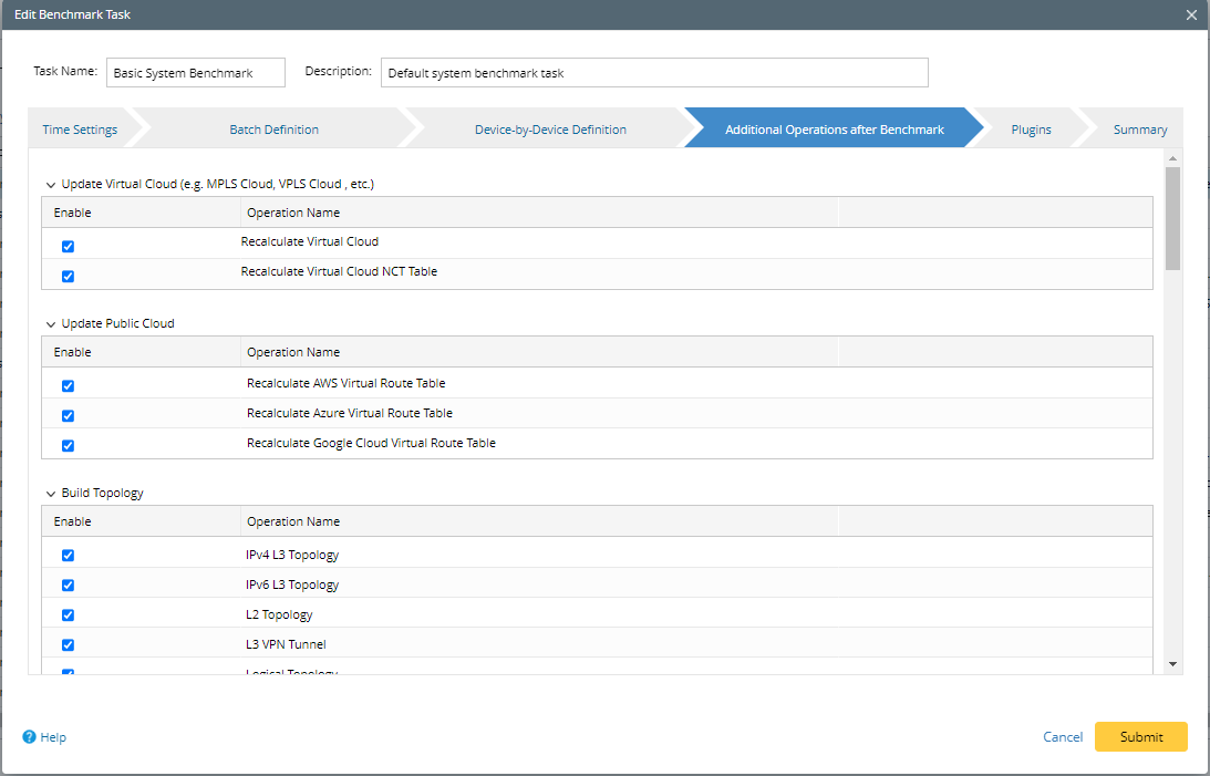- Build Topology: Select all the options under Build Topology to keep the topology accurate. If it takes a long time to rebuild the L2 topology, you can create an individual Benchmark task with less frequency to rebuild them. See <hyperlink to Best Practice> for details.