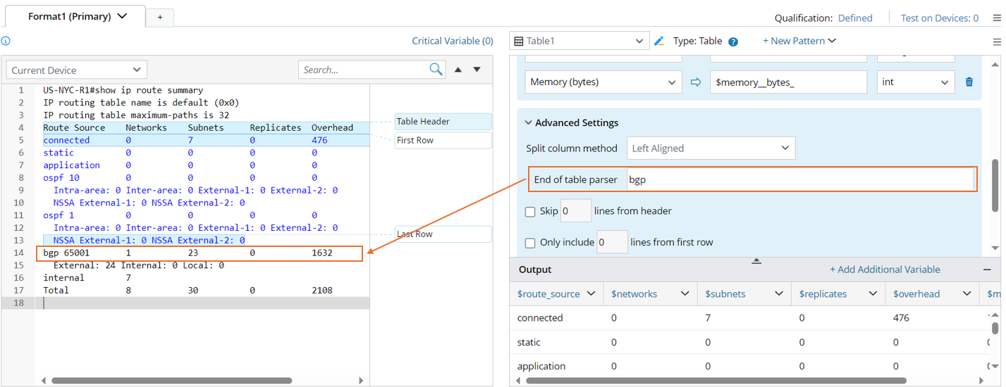 When there are extra lines between the line of the table header and the lines of the table rows, for example, the table header in the command output of 'show ip eigrp neighbor' is wrapped and occupies two lines. You can select to skip 1 line from the table header line in the Advanced Settings so that the unwanted lines will not be parsed.