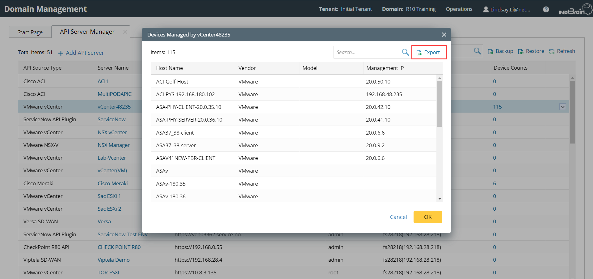 Tip: You can export the full data of either all the devices or only the interested devices (by using search function) managed by each API server.