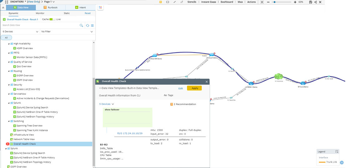 - On a map page, click Overall Health Check in the Dynamic Data View pane to preview it and then click Apply.