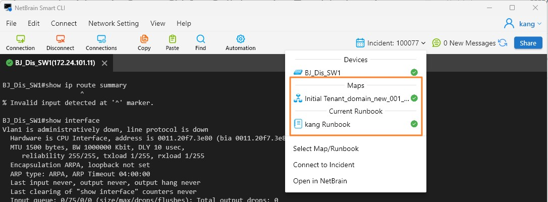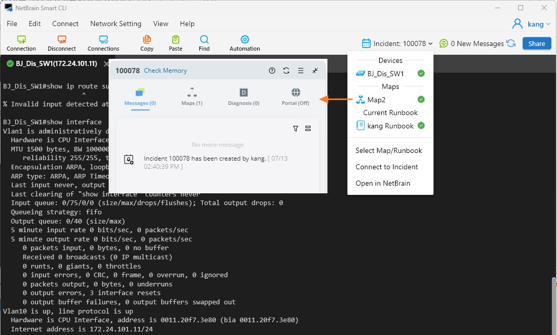 With the Incident integrated into Smart CLI, network engineers can share insights and findings and collaborate with their colleagues when dealing with network changes and troubleshooting network issues.