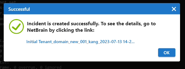 icon behind the incident ID, then click on the map or runbook name to open the incident in the NetBrain System for further collaborative operation. See Sharing Insights in Collaboration Session for more details.