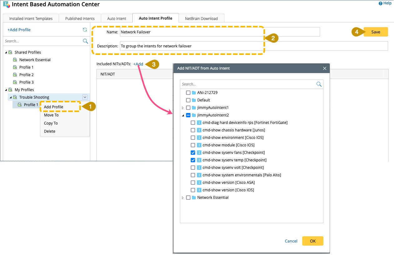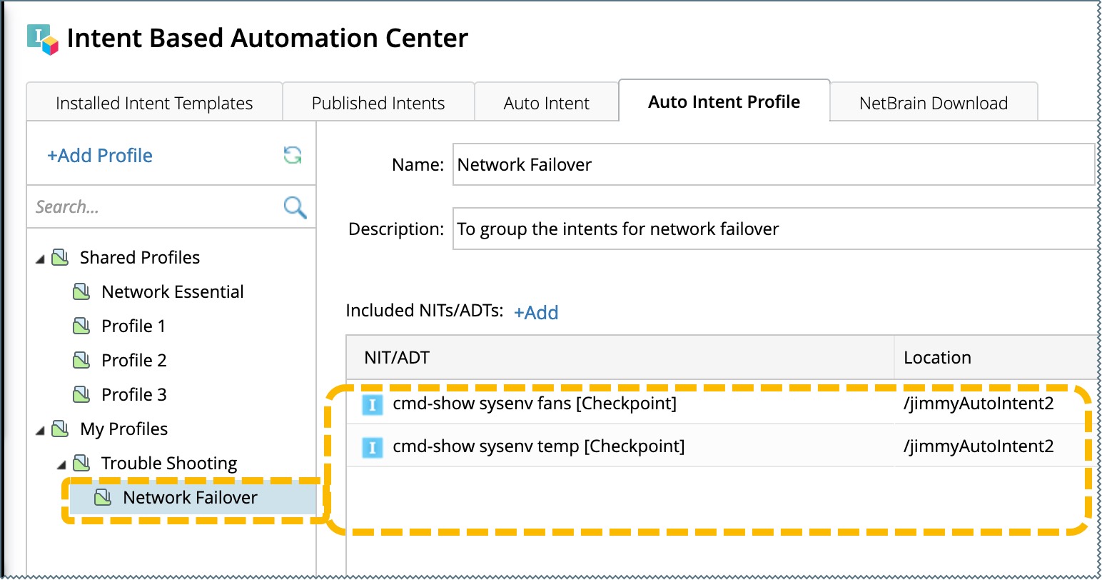 - Go to Intent Based Automation Center > Auto Intent Profile.