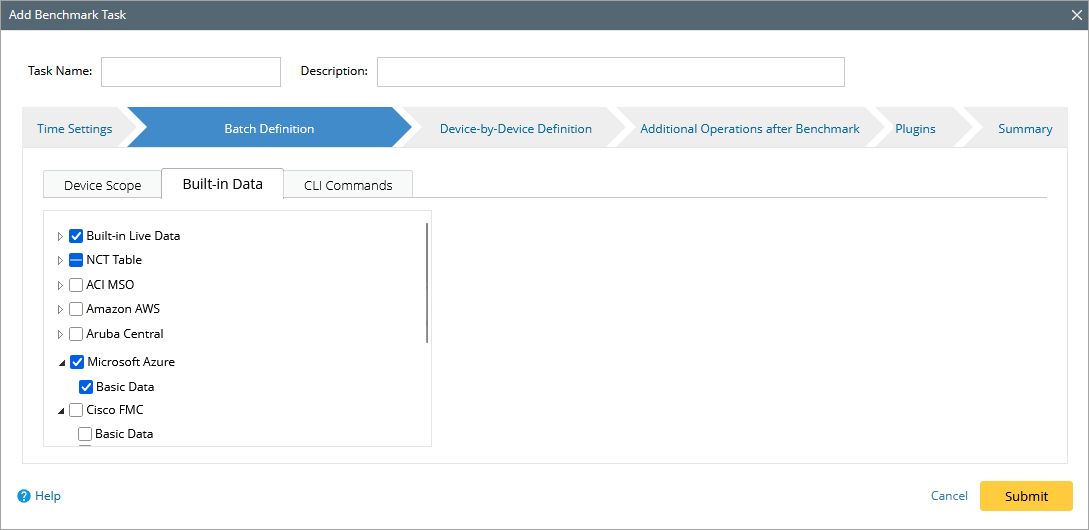 - Go to the Buil-in Data tab, and select the Microsoft Azure checkbox. Keep the default NCT tables selected, and additionally select BGP Advertised Route Table.