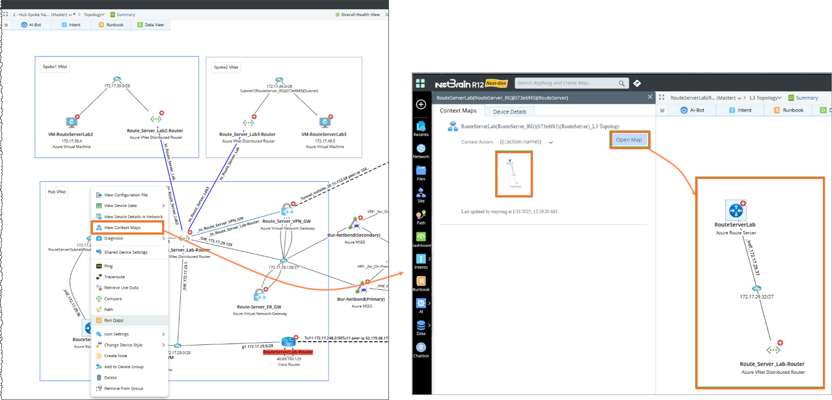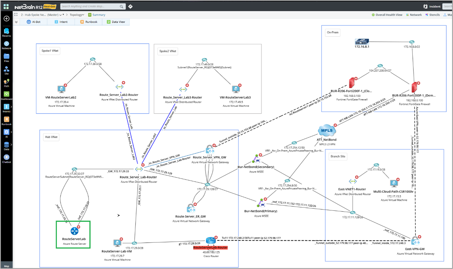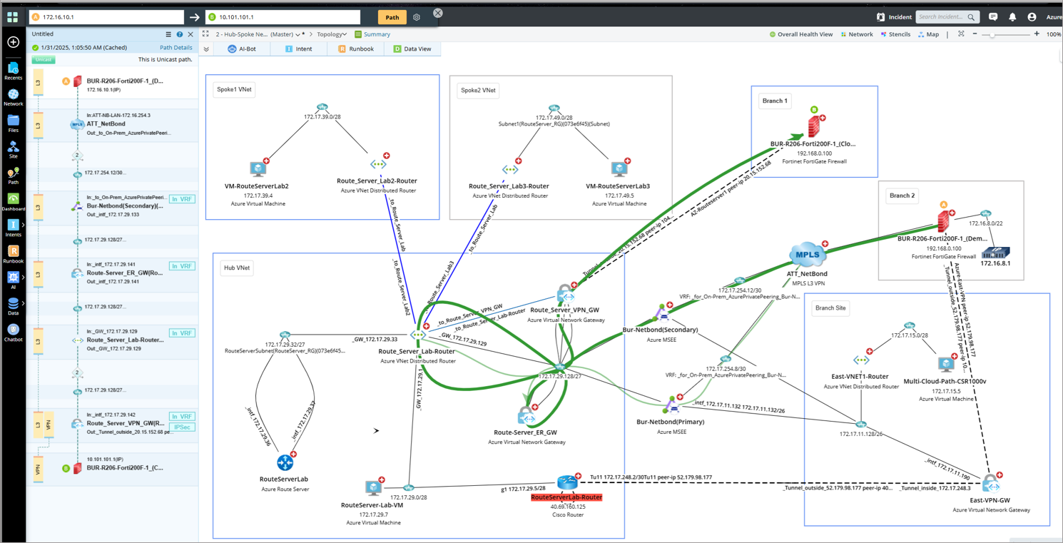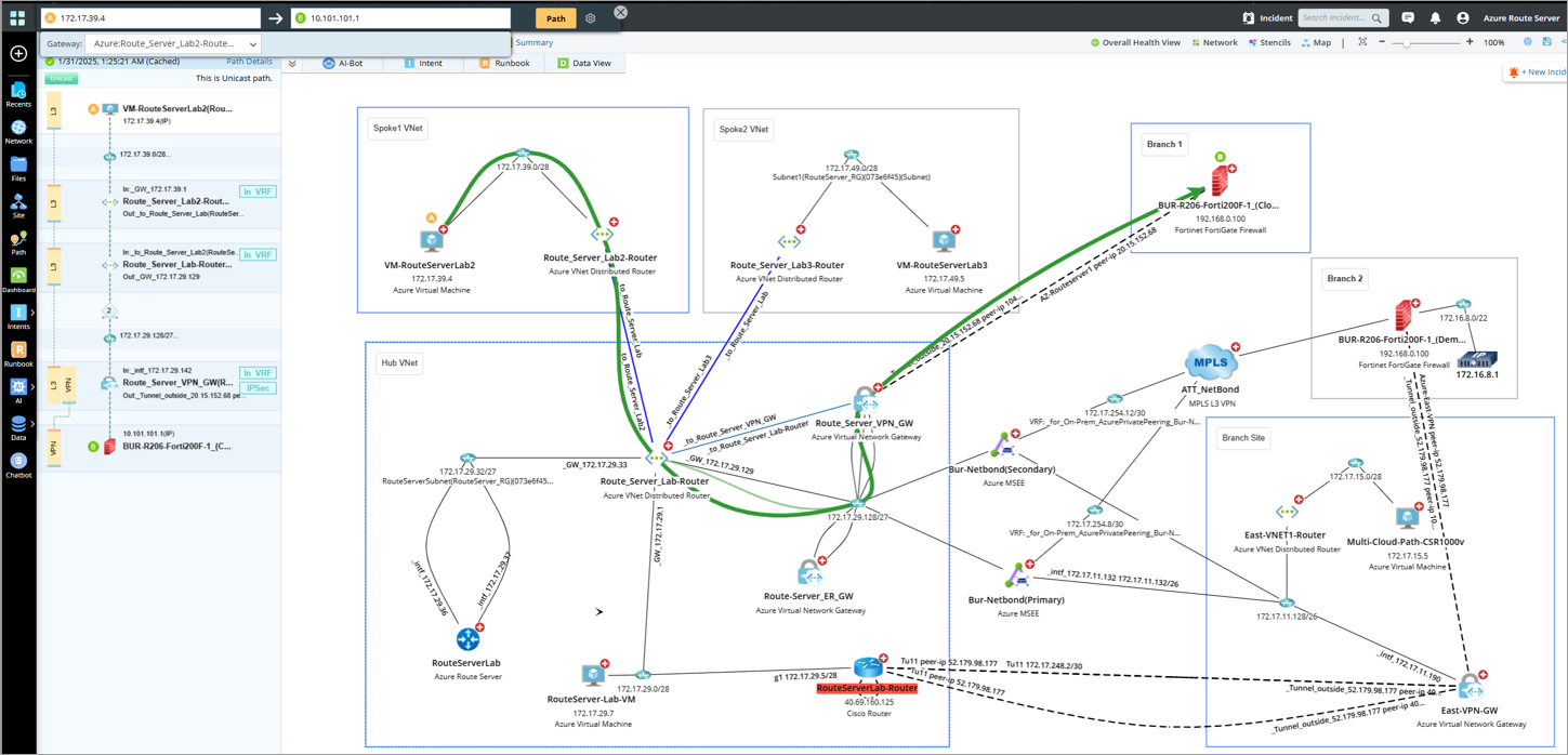 - Neighbor Topology: NetBrain provides visibility and insights into your cloud network, including Azure Route Server connectivity and topology.