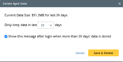 - Click Save & Delete to save the settings and delete the data older than the specified days.