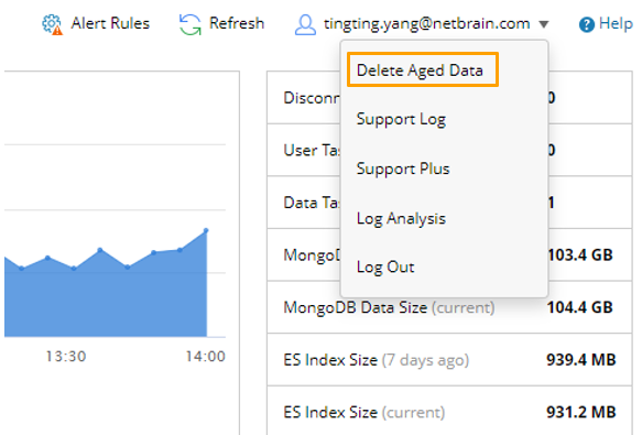 - On the Home Page, click your login name at the upper-right corner and select Delete Aged Data.