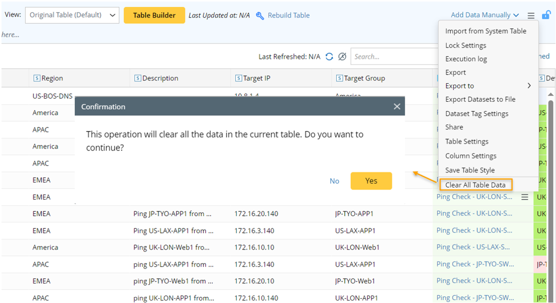 After data is cleared, the empty ADT still exists in ADT Manager. All the ADT data can be cleared (including manually added data and dynamic updated data) by this feature. A Confirmation dialog will prompt you to confirm this action.