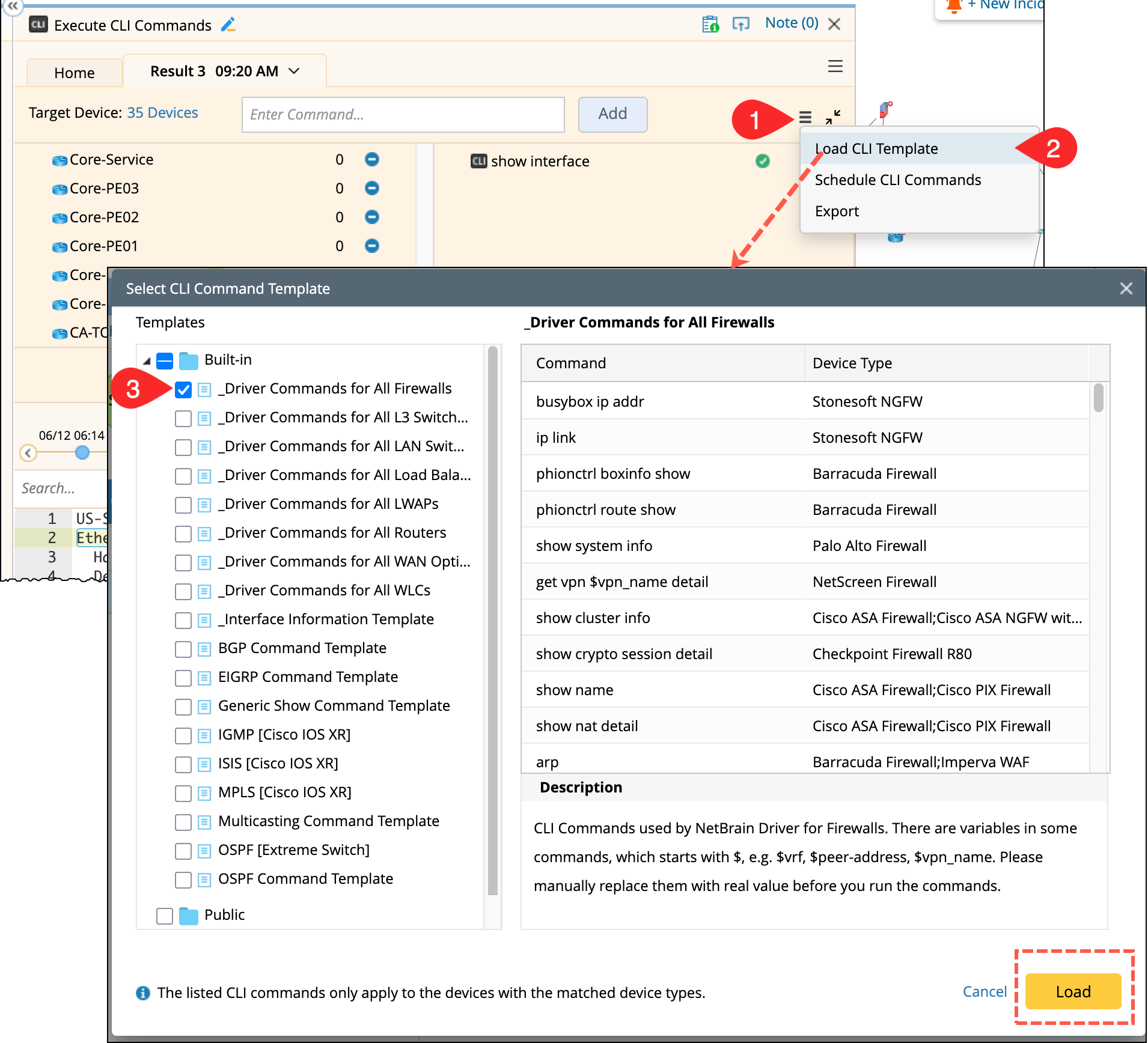menu located next to Target Devices. - Select Load CLI Template to open the corresponding dialog.