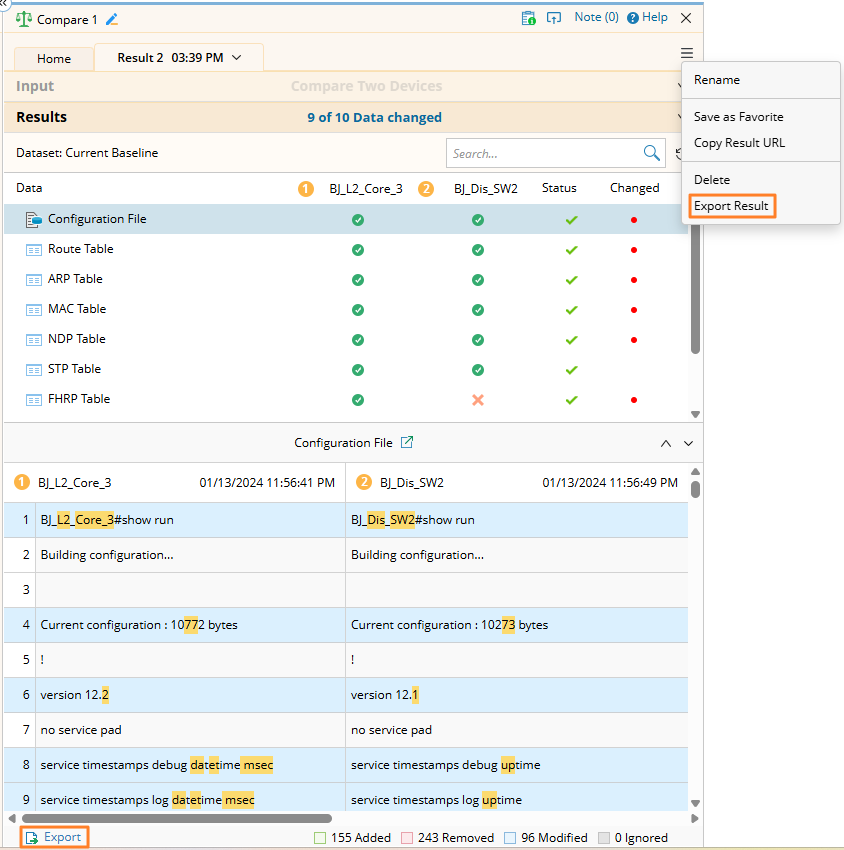 Export Comparison Results: The displayed comparison results can be exported to HTML files.