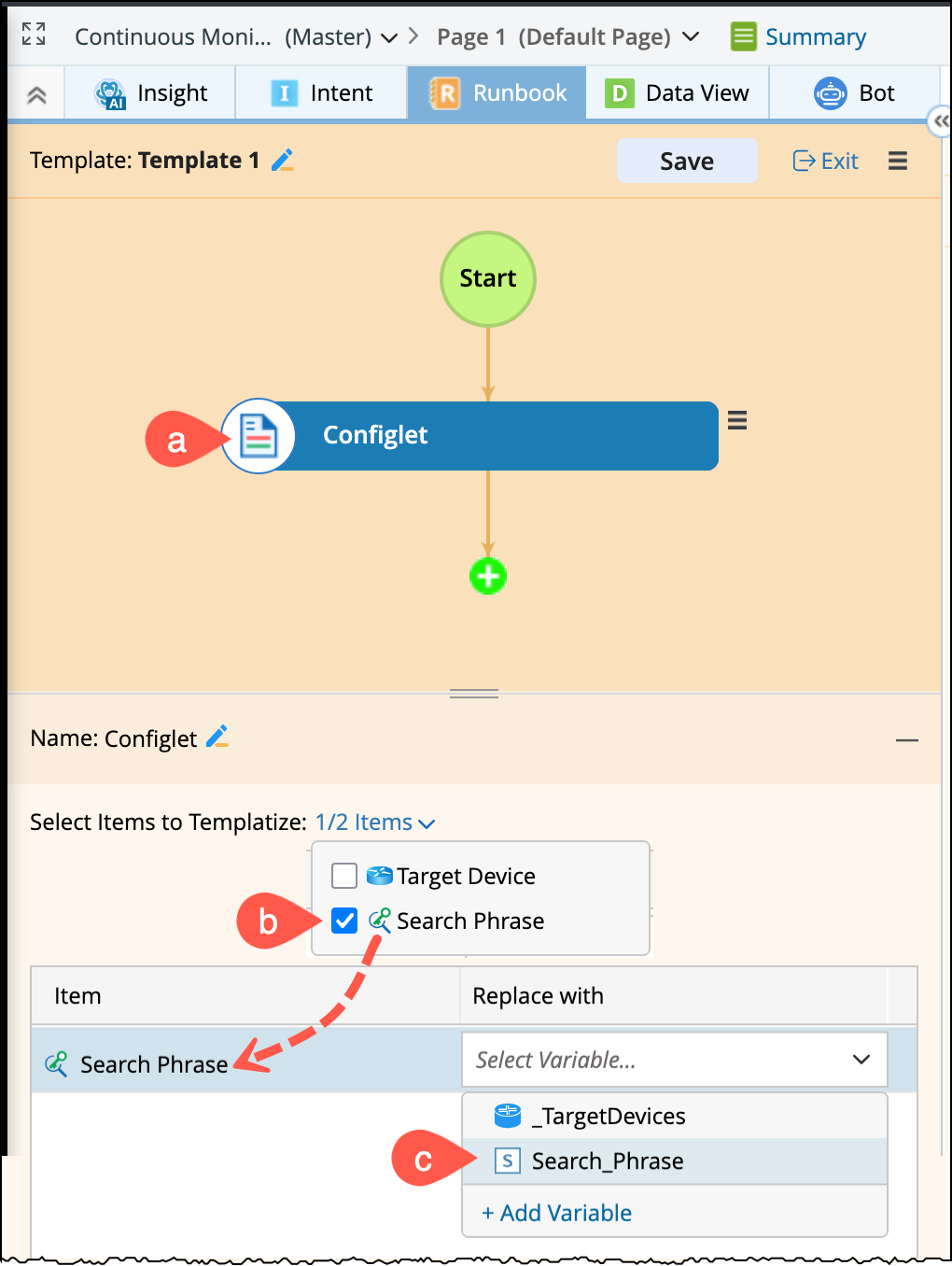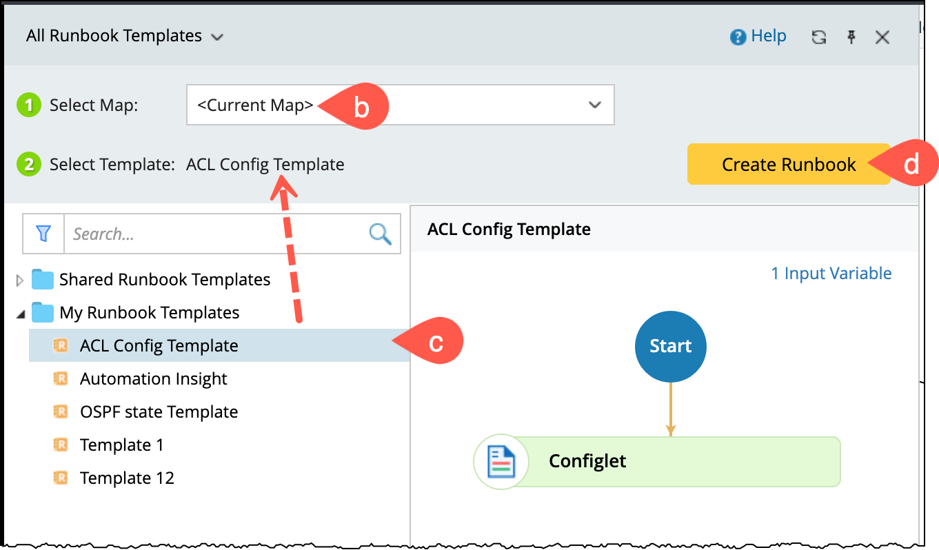A new Runbook is created with the same name and you can further modify the Runbook if needed. The Configlet Node will automatically include: