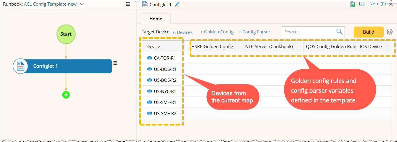 - Open the runbook with pre-defined Configlet node.
