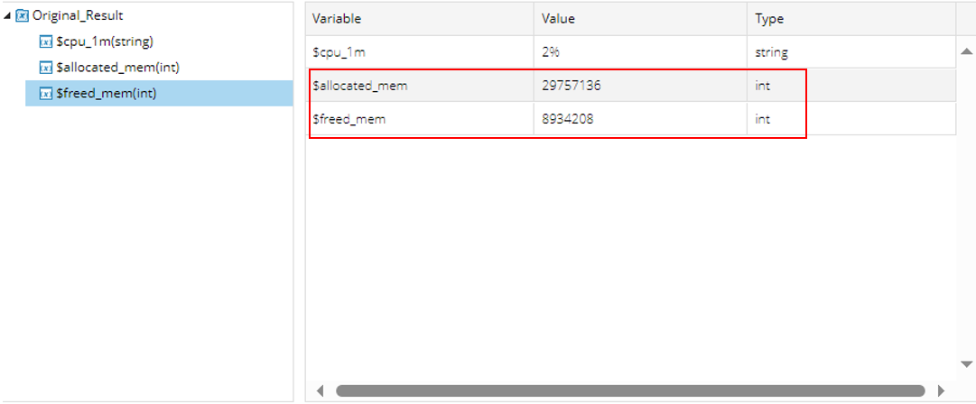 - Follow the above steps to add the variable of the free memory space. Then both the CPU and memory utilization are displayed in the variable tree.
