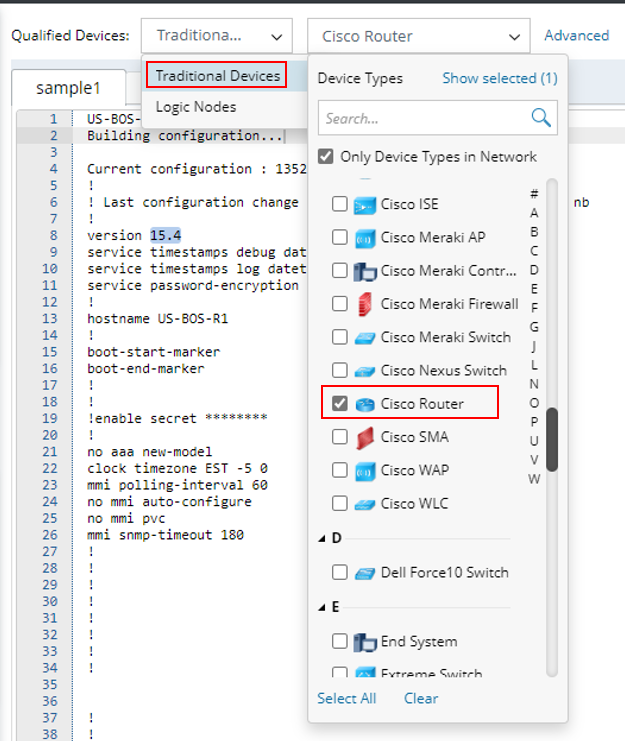 - Keep the default Traditional Devices node type and select Cisco Router from the Device Type list.